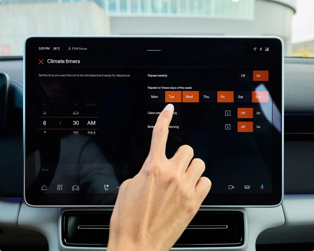 En tant que constructeur automobile haut de gamme, Polestar apporte un nombre surprenant de caractéristiques qui contredisent son design scandinave minimaliste. Par exemple, son système avancé d’aide à la conduite (ADAS) est un ensemble de 23 fonctions électroniques conçues pour vous aider, vous et votre famille, à être plus en sécurité, quelles que soient les conditions, comme la commande électronique de la stabilité, la commande régénérative de la stabilité et même le système d’évitement et d’atténuation des collisions. Le Groupe Pilot offre davantage de fonctionnalités pour la conduite semi-autonome. Tous ces éléments sont de série dans tous les Polestar 3 et Polestar 4.